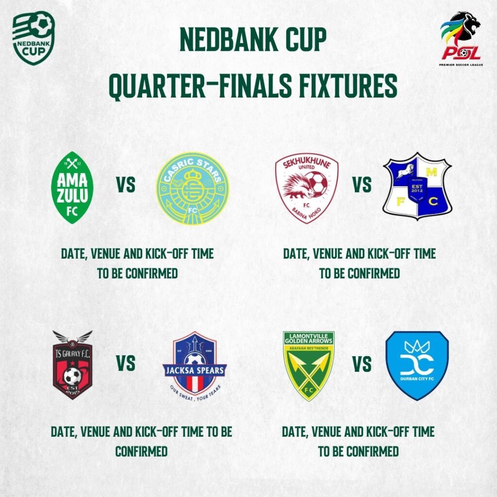 The Nedbank Cup quarterfinal draw has delivered intriguing matchups, with South Africa’s football heavyweights already eliminated.